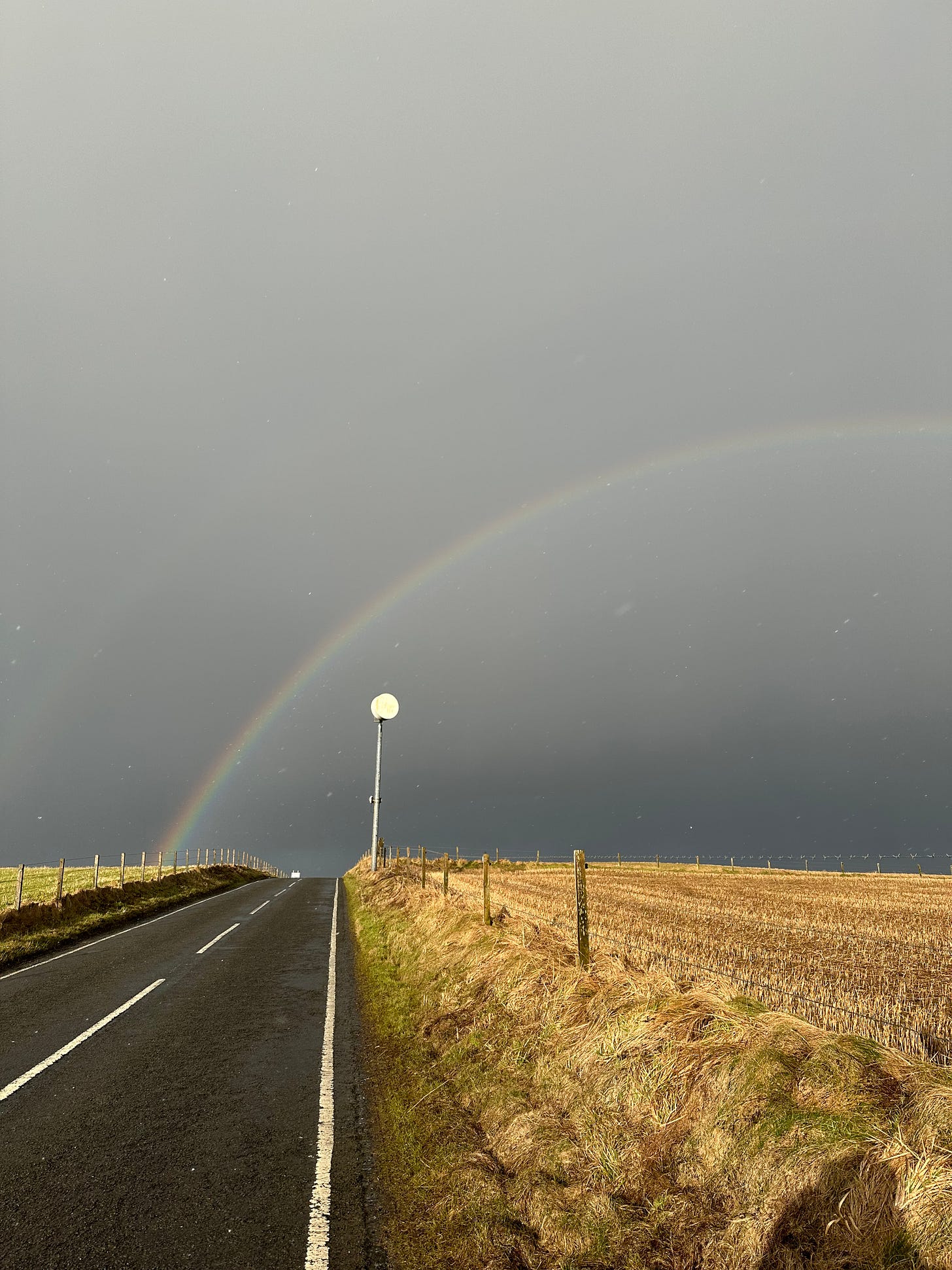 Finally, relectantly, I pulled on thermal leggings, borrowed my partner’s wind-proof running top, laced up my trainers and set off up the road, squinting into the rain with my shoulders hunched and my feet clumping on the tarmac. I’m certainly no athlete. My ‘run’ is more of a slow, shuffly jog. But, as the movement started to warm me, the cold wind began to feel quite pleasant against my cheek, refreshing instead of biting. The sun briefly managed to make double rainbow. As my lungs filled and emptied and my heart started to beat firm and steady, I could feel my whole body and mind ease into the rhythm.