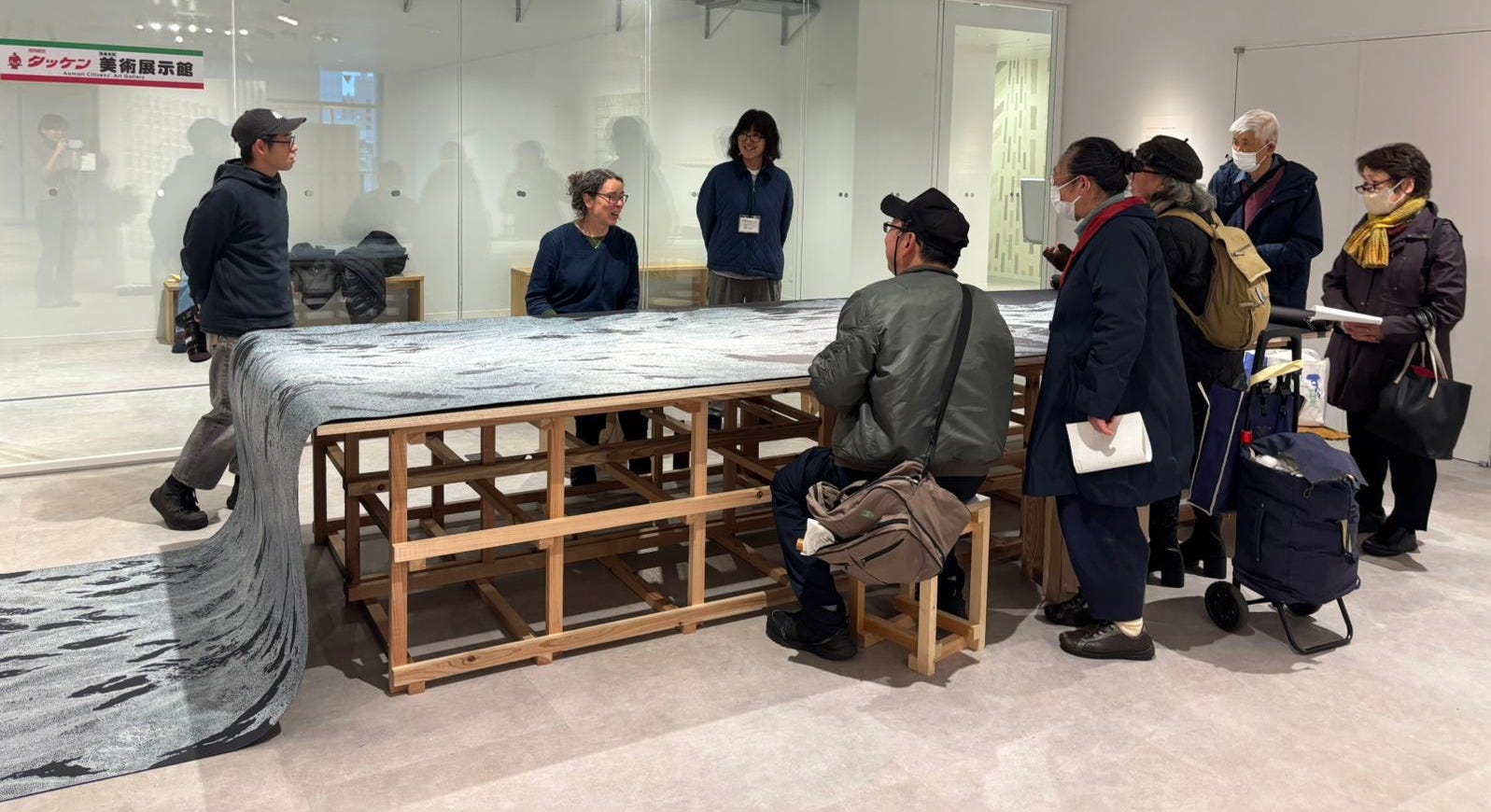 We had some excitement early in the week when the TV crew arrived to film a live slot on Aomori TV. Fortunately, all I had to say was a cheery ‘konnichiwa!’ and then leave the rest to ACAC curator Tomo Setou to explain things for the breathlessly excitable presenter. One of the receptionists kindly recorded the slot for us. Here’s me, looking a bit awkward.