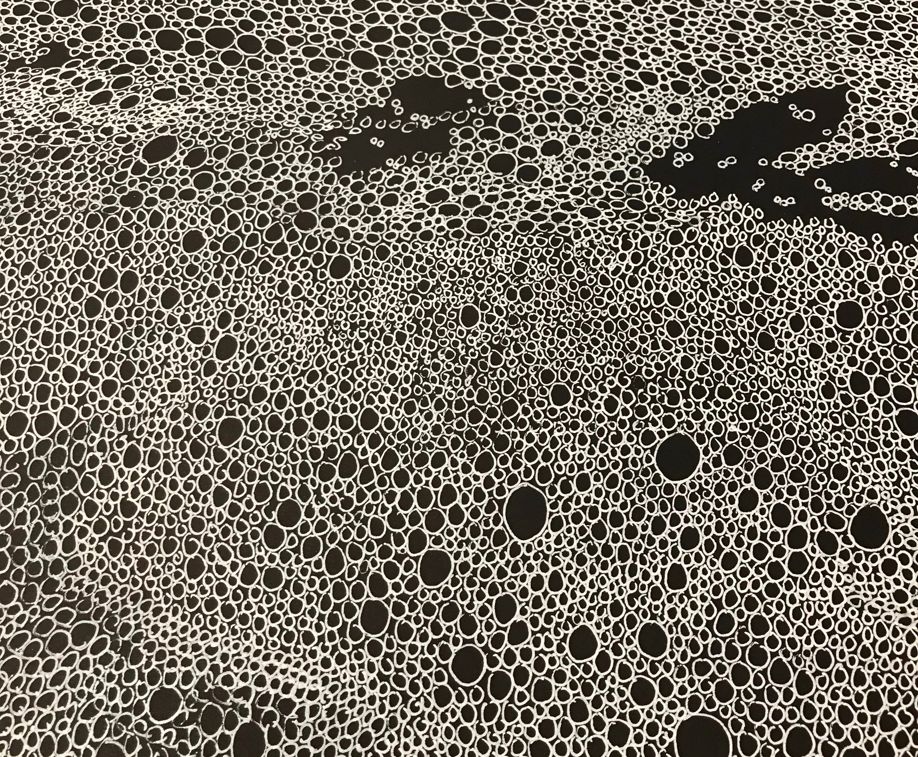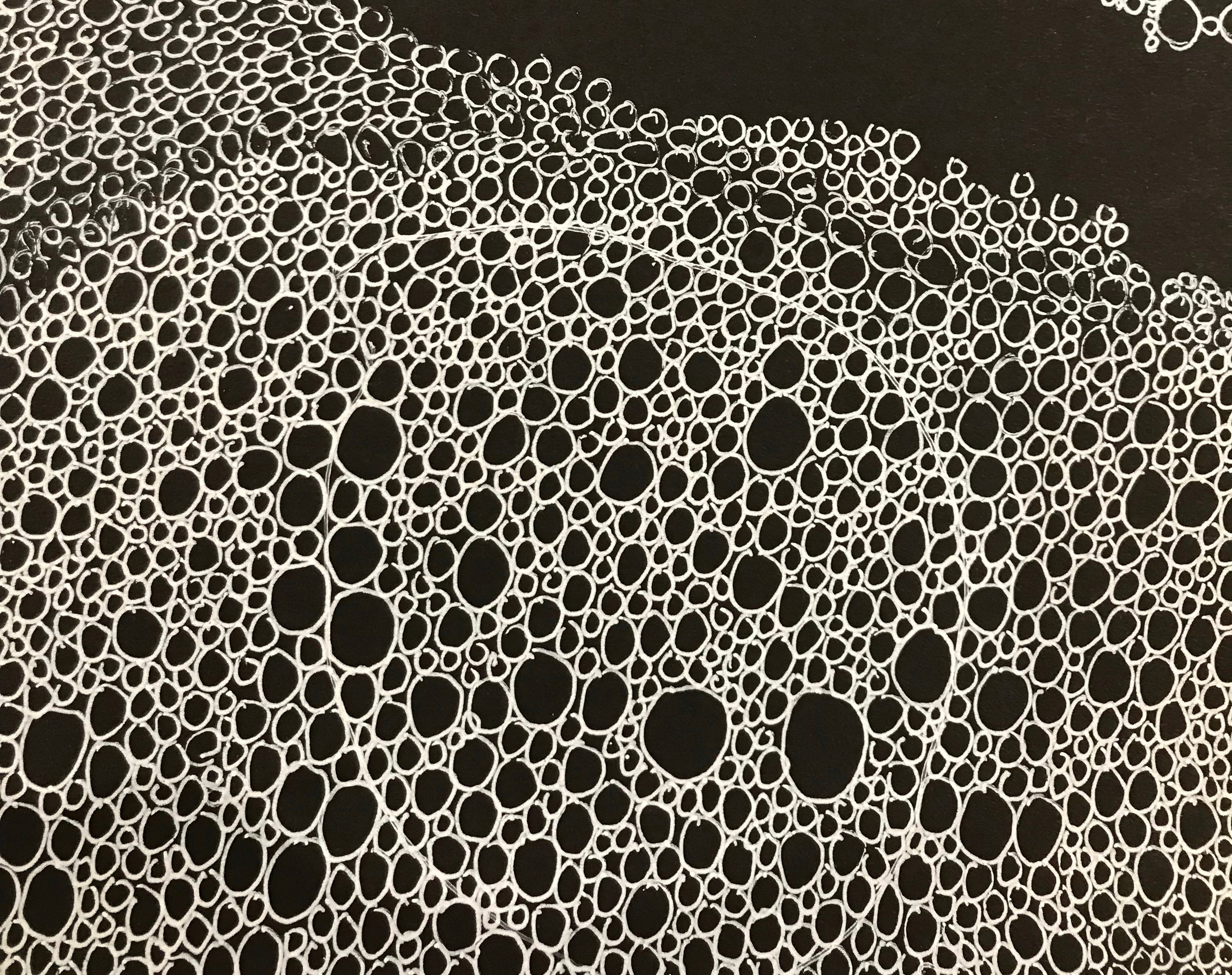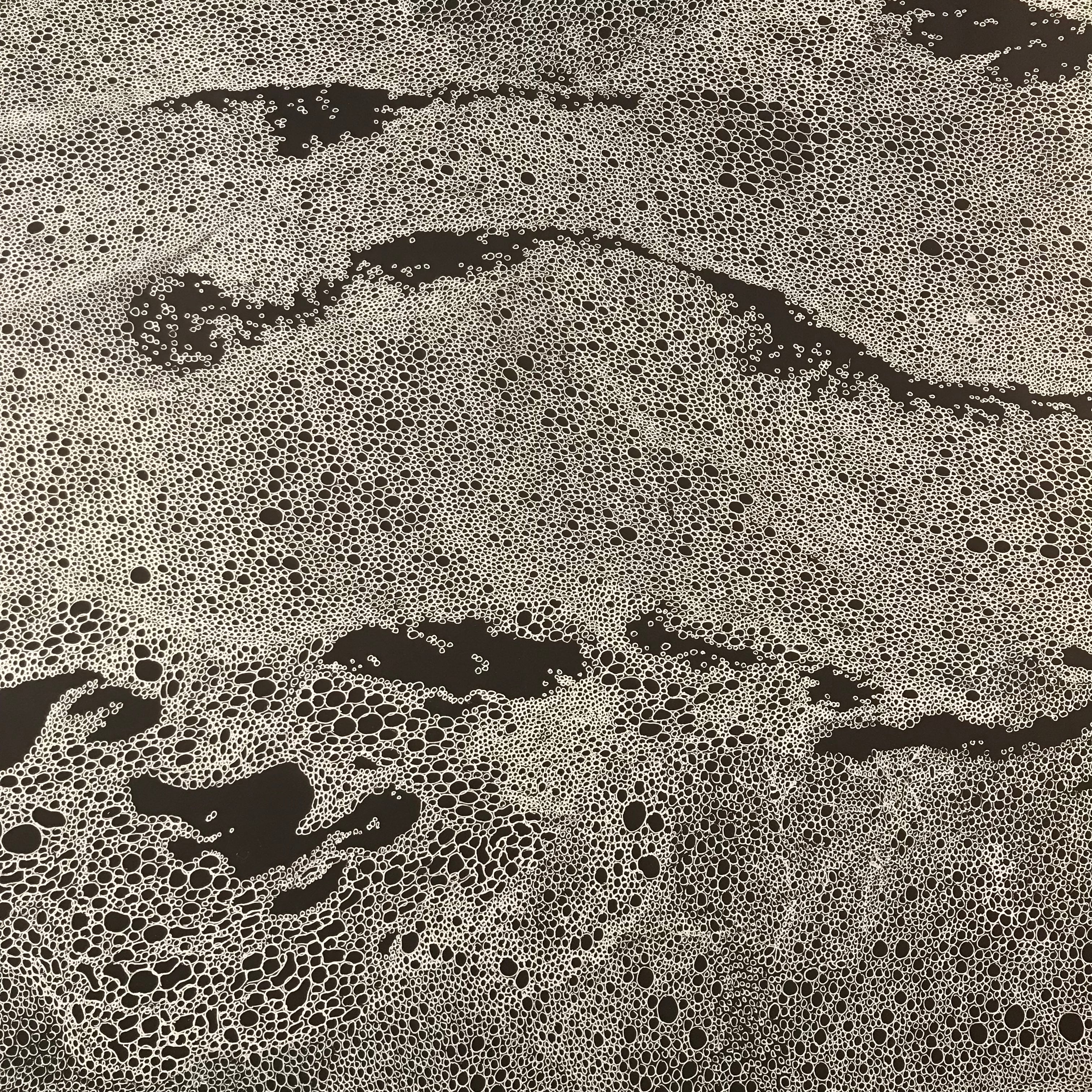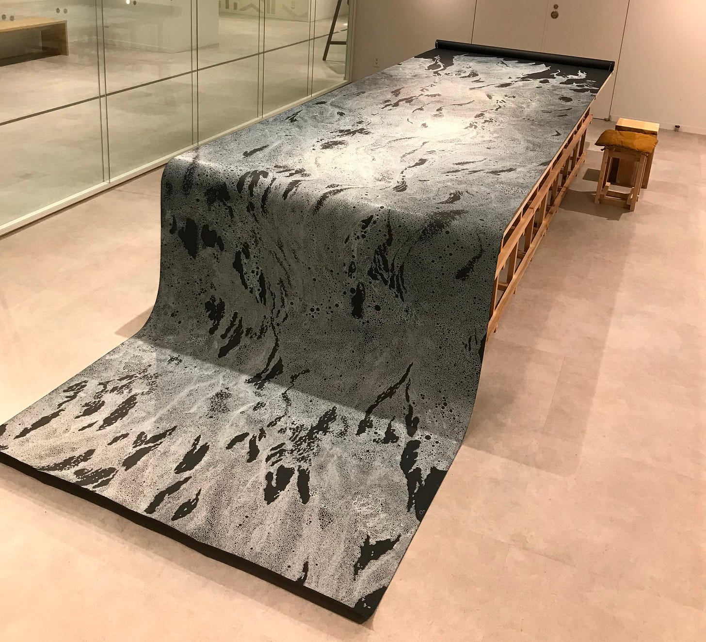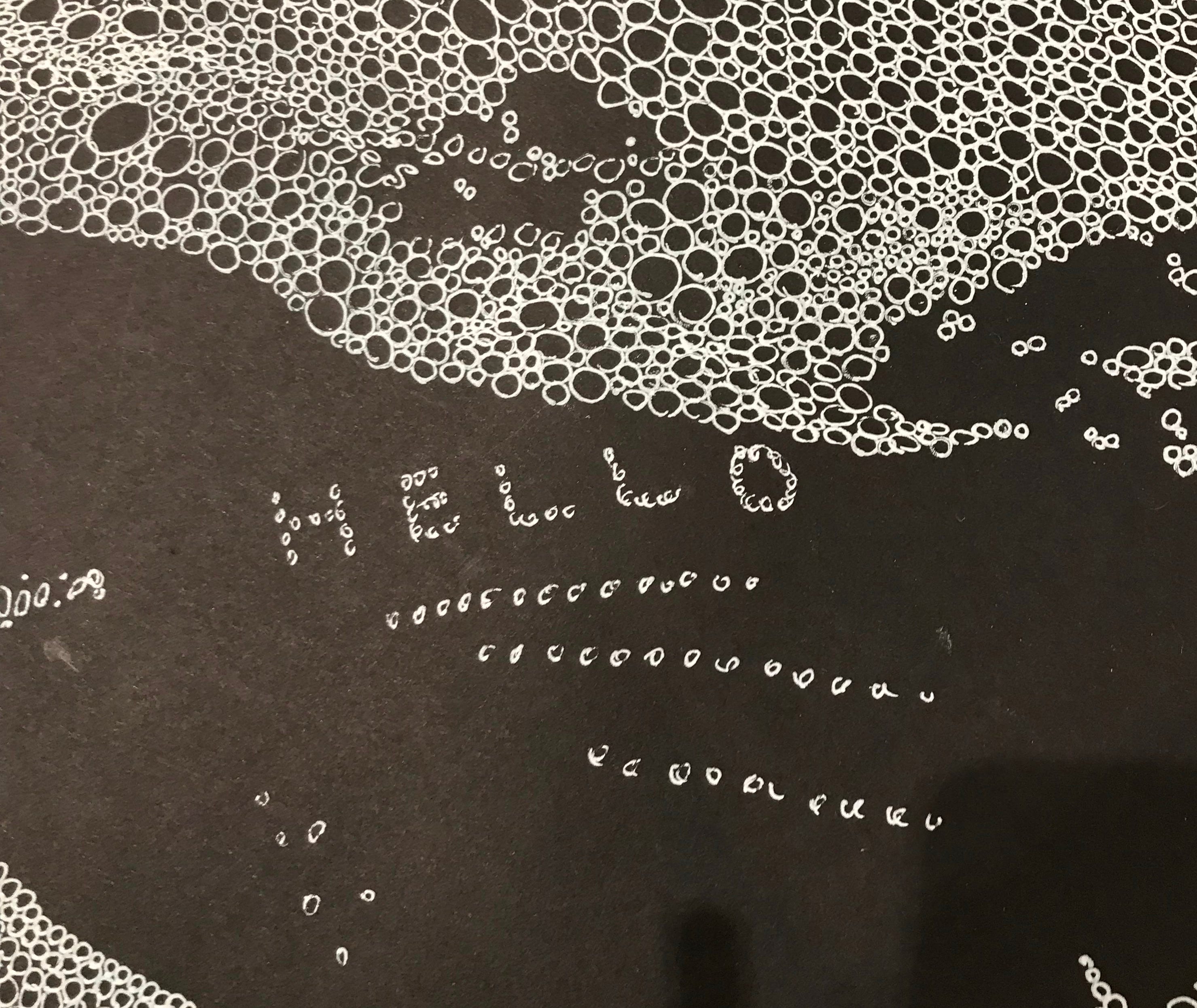 I’ve been travelling every day from the residency to Aomori Citizen’s Art gallery in the city centre to work on my collaborative drawing ‘Confluence’. It’s been a week of steady work, with plenty of willing helpers picking up a pen to add a few bubbles to the flow of the growing river. There’s been the occasional hiccup when I’ve arrived a little late to discover some random ‘helpers’ have left their mark.
